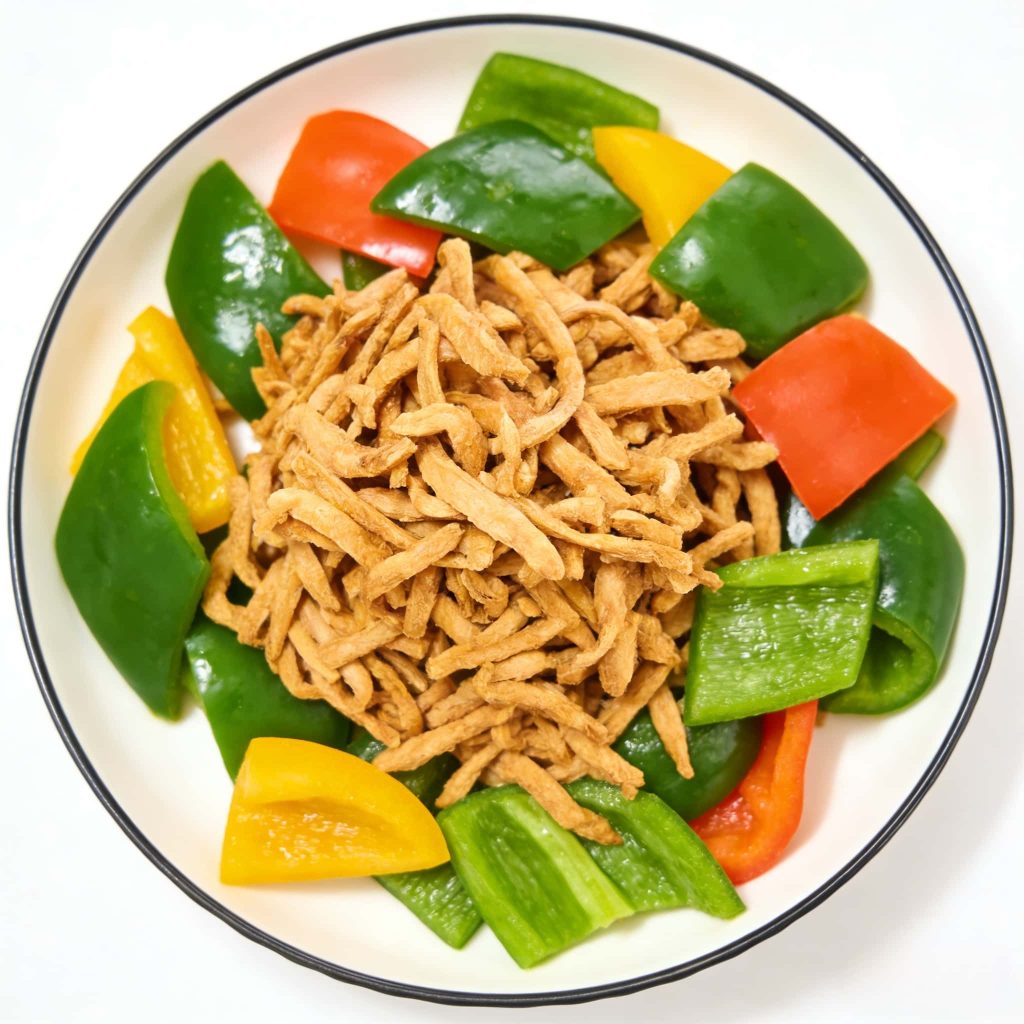 High Texture, Easy to Flavor | Ready-to-Cook | Vegan Strips.Soy protein strips with a fibrous texture similar to chicken breast or lean meat. Quick-cooking – ideal for salads, wraps, or stir-fried noodles.