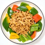 Stir-fried noodles, tacos, salad toppings, vegan skewers.